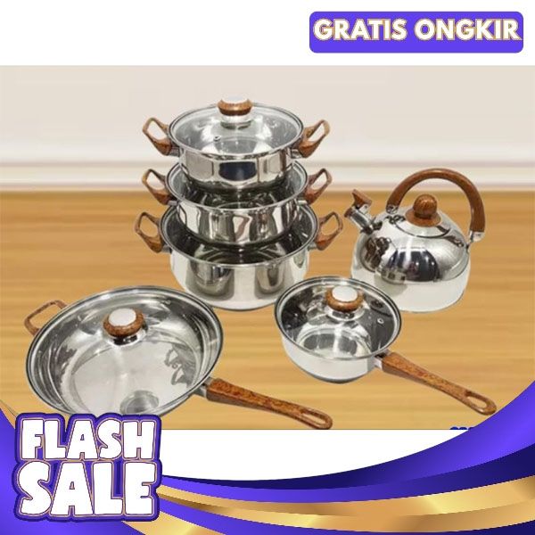 [Mall] panci set kayu tutup kaca dan teko stainless