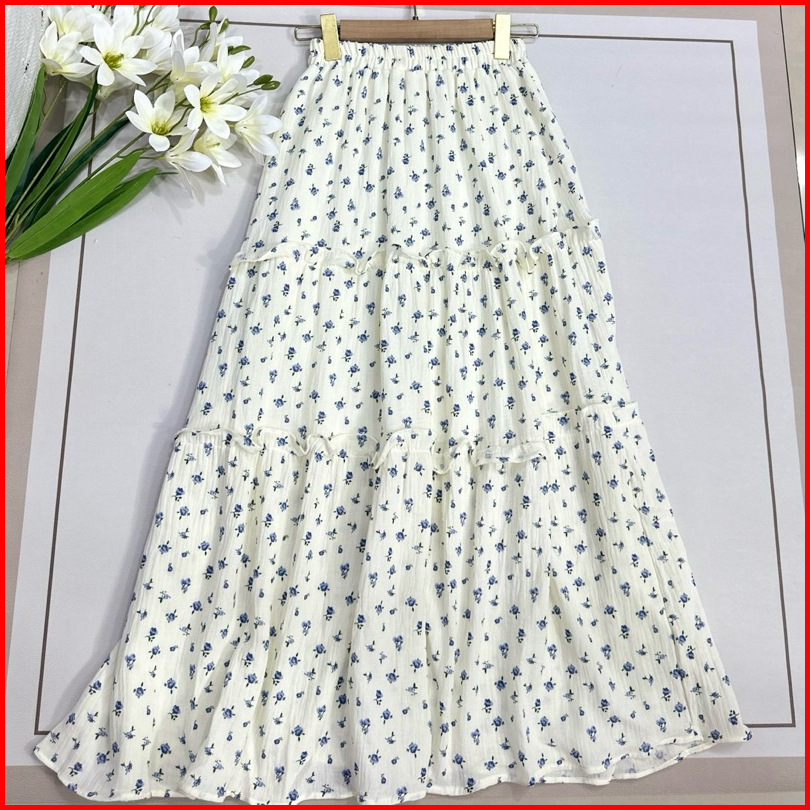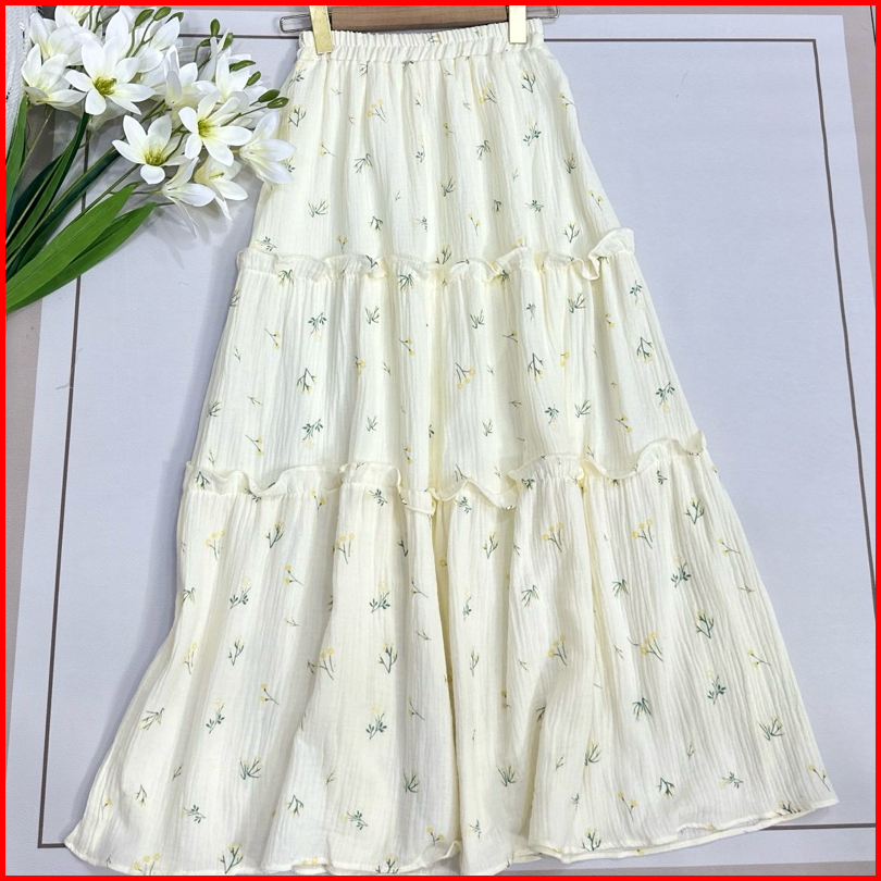 Rok Wanita Korean Sytle Rok Panjang Model A Line Pinggang Karet Fit To Xl