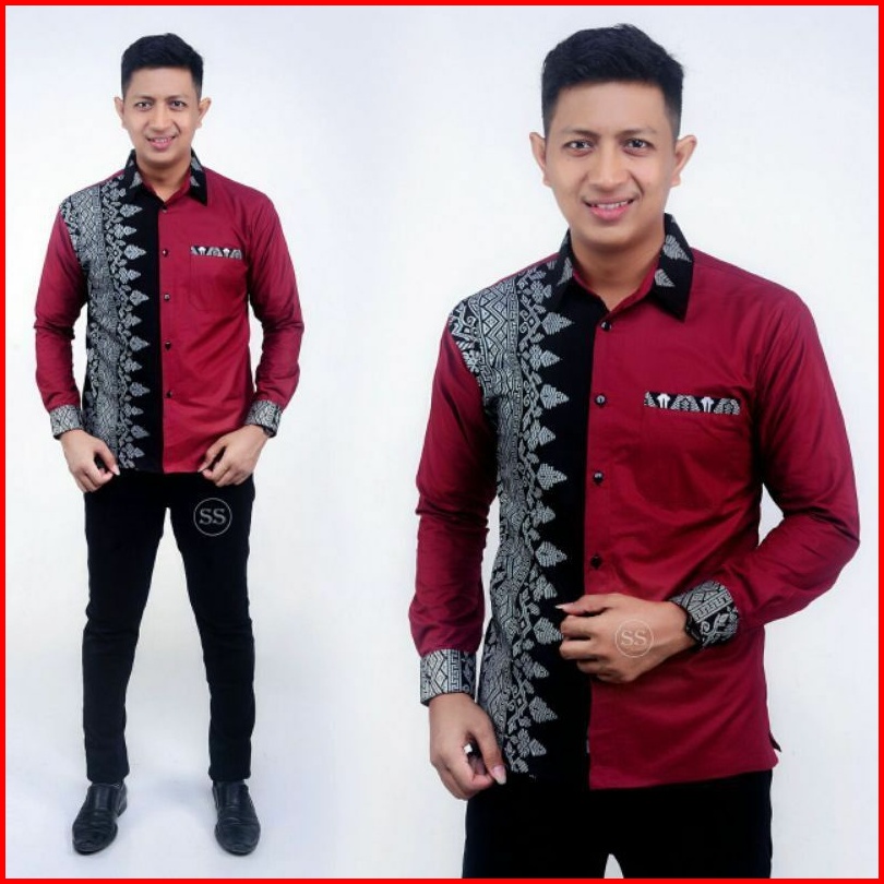 Promo Asli Baju Batik Kemeja Pria Lengan Panjang Sogan Lawasan Manuk Kembar Cotton
