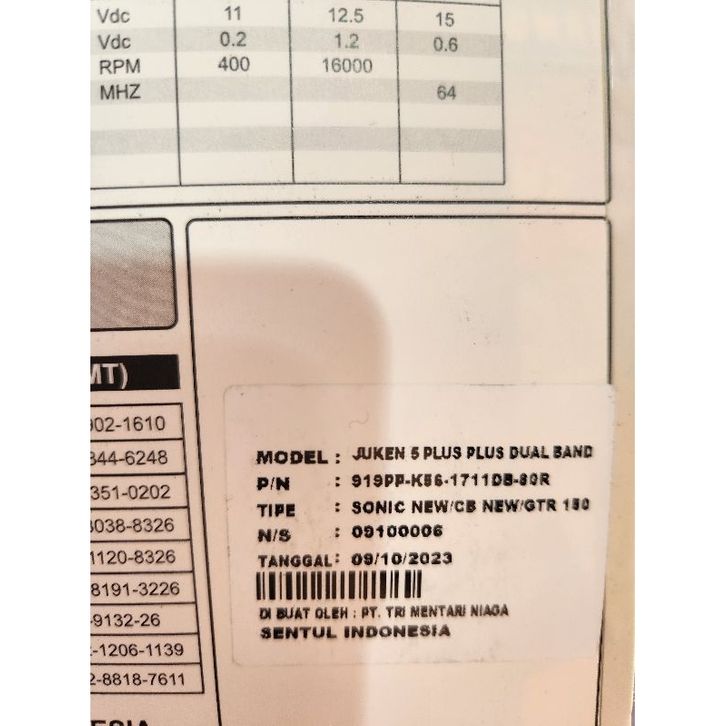 ECU BRT Juken 5++ Sonic New CB150R LED Dual Band Kode K 56