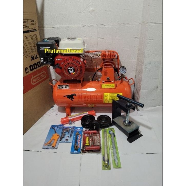 KOMPRESOR ANGIN LISTRIK KOMPRESOR MUSTANG 1/4HP +MESIN GX160 SIAP PAKAI