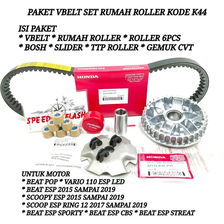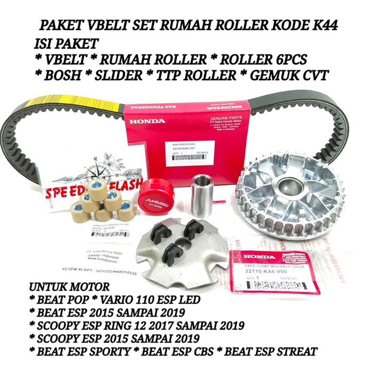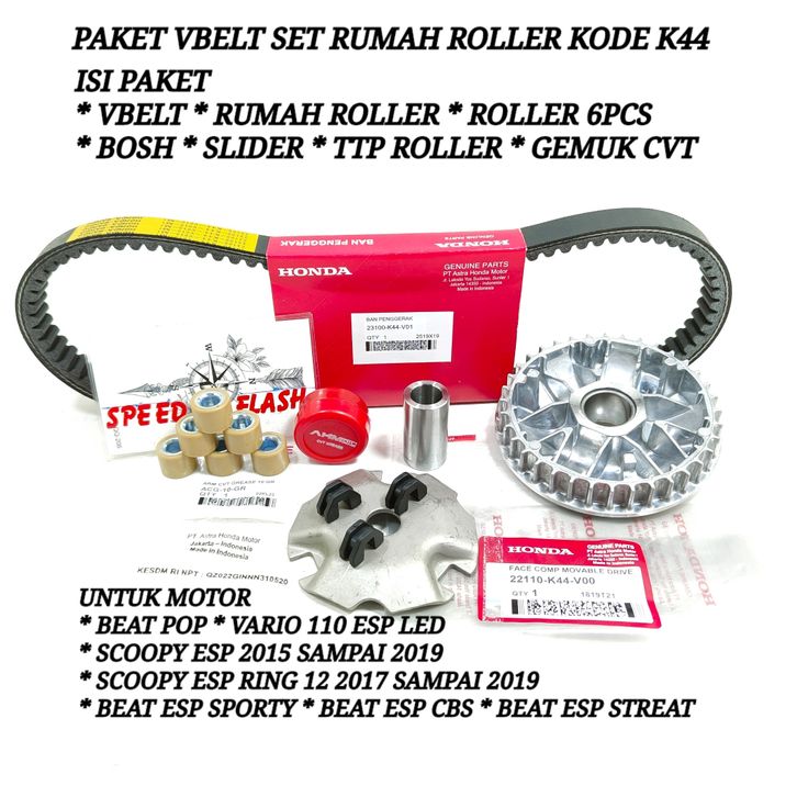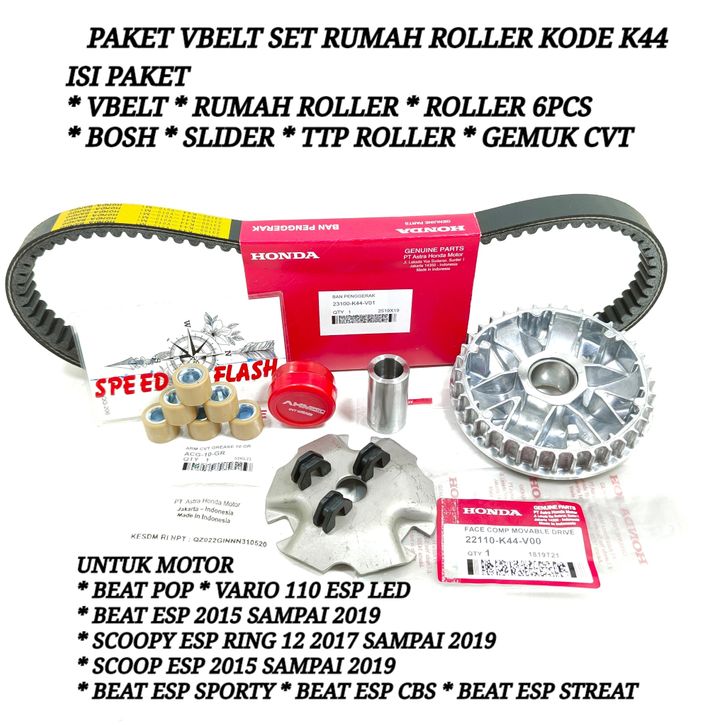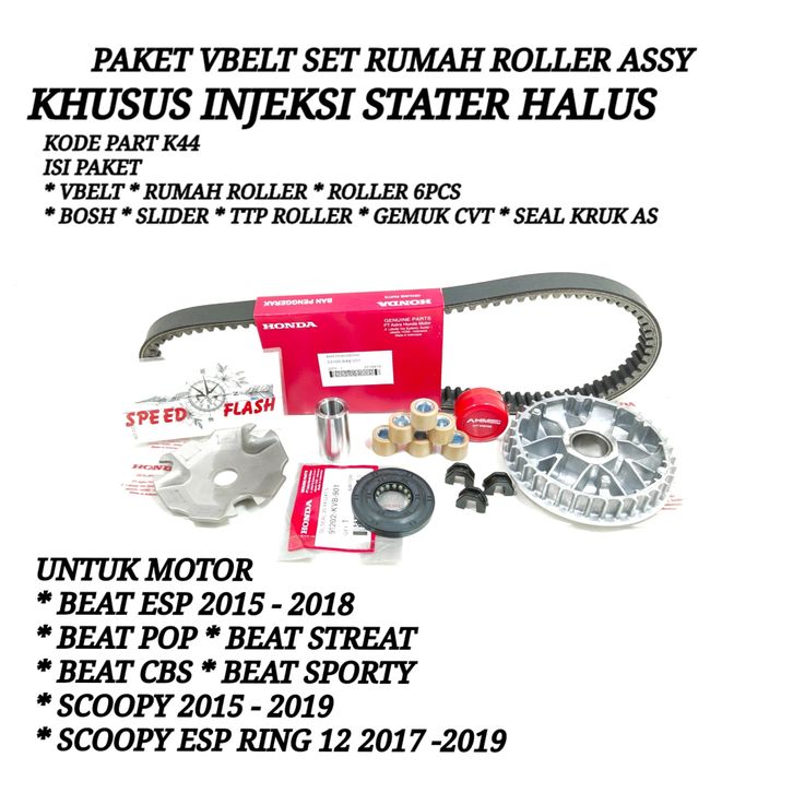 Paket Vanbelt Racing VANBELT VBELT SET RUMAH ROLLER DAN GEMUK BEAT POP BEAT ESP SCOOPY ESP SCOOPY RING 12 2018-2019 STA