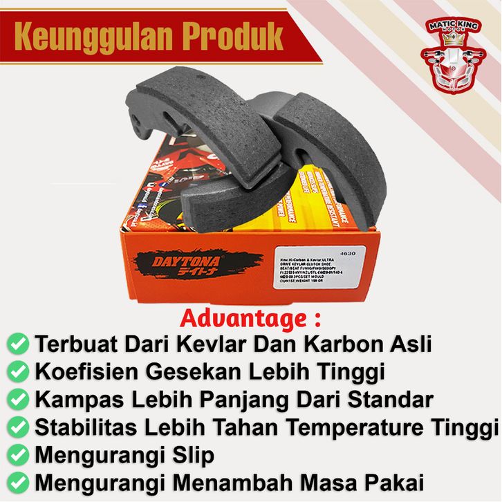 KAMPAS GANDA DAYTONA Kampas Ganda Kopling Beat New Deluxe Genio Scoopy New 2021 Daytona HiCARBON KEVLAR 4637