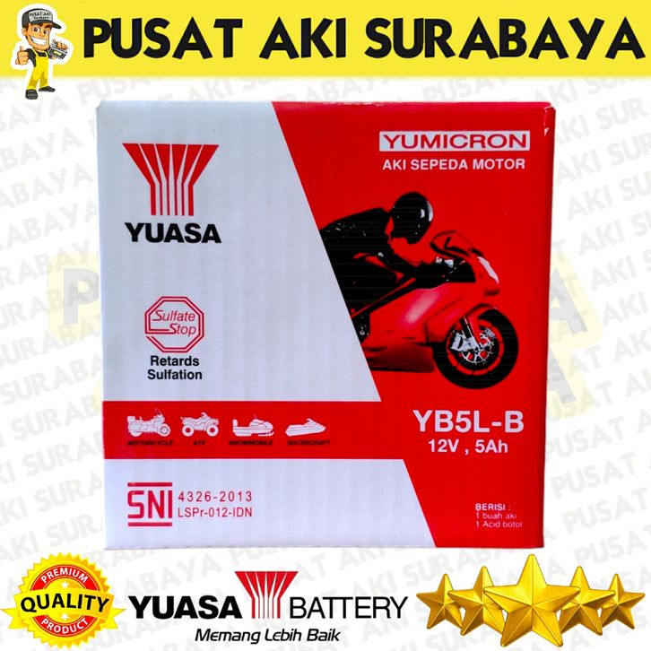 Aki Basah YUASA YB5LB 5 12 VOLT 5 AMPER AKI BASAH ACCU MOTOR MIO SPORTY9rAND LEGENDA JUPITER BURHAN MEGAPRO KAZE VEGA T