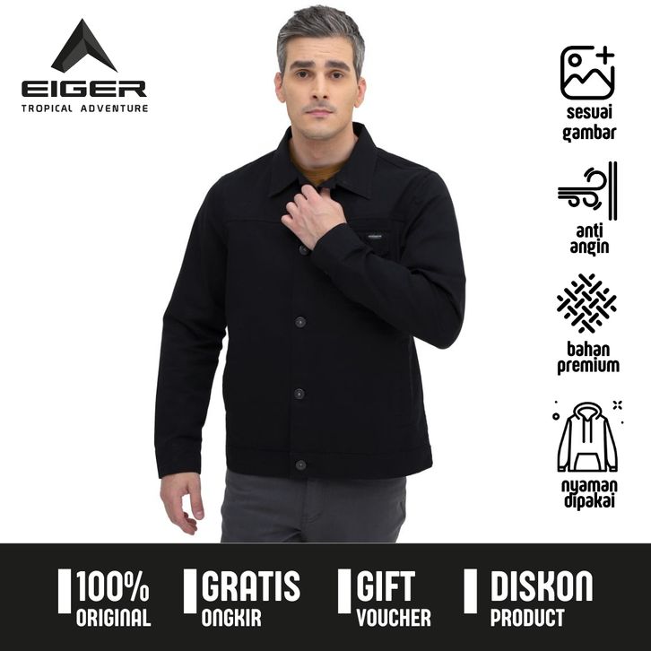 Kemeja Eiger Pria Original Jaket Anti Angin Rychlost Warna Hitam Bahan Katun 71 . YKQR