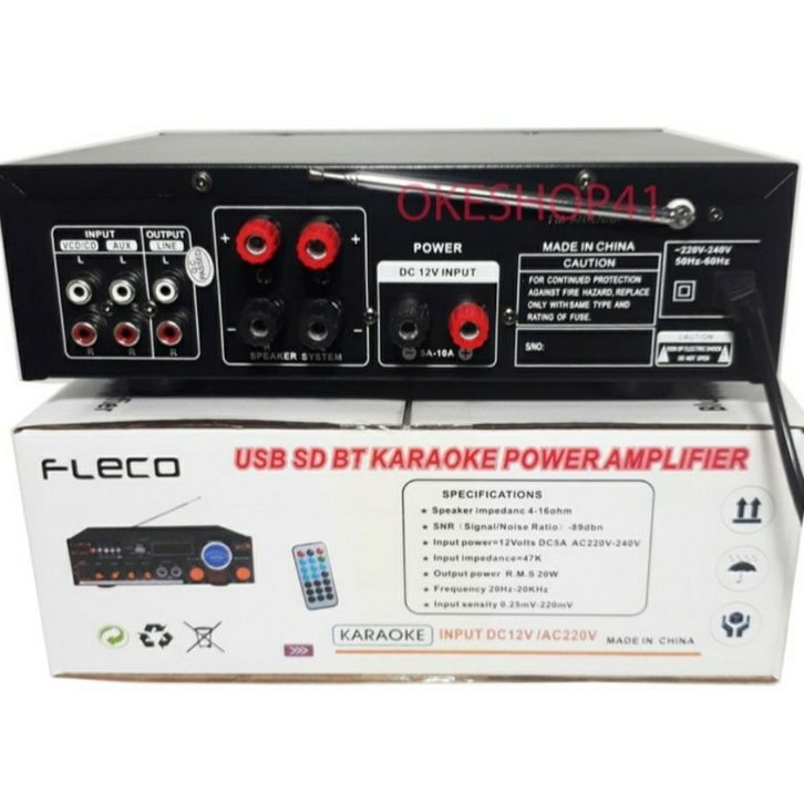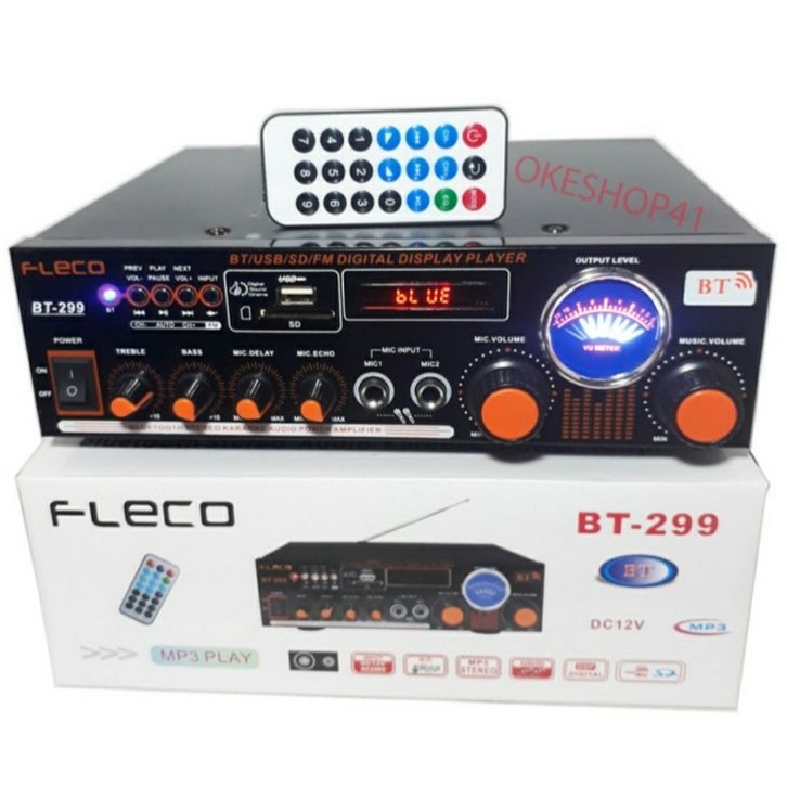 Power amplifier - Amplifier Fleco BT 299 AC dan DC - Ampli Bluetooth -2 Slot karaoke fm dll-Garansi