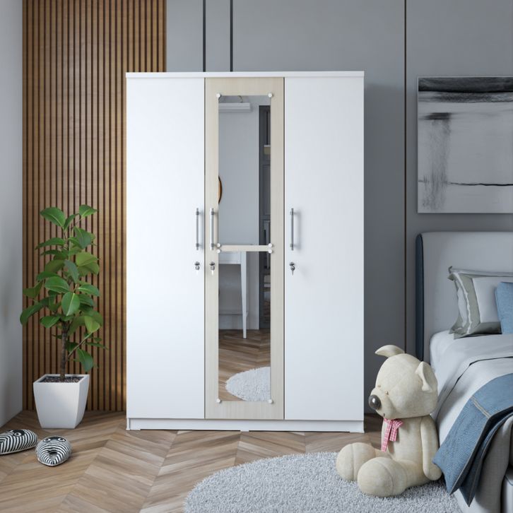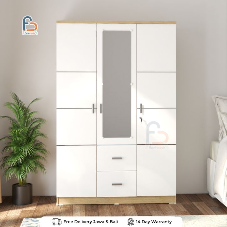 Lemari Pakaian 3 Pintu Lemari Baju Kayu Susun Jumbo Minimalis Lemari Kayu Nevada