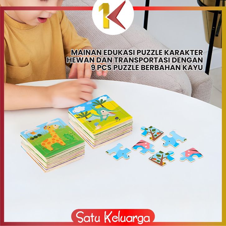 SK-M167 Mainan Edukasi Puzzle Anak Karakter Hewan Dan Kendaraan Puzzle Kayu 9Pcs / Mini Wooden Puzzle Animal