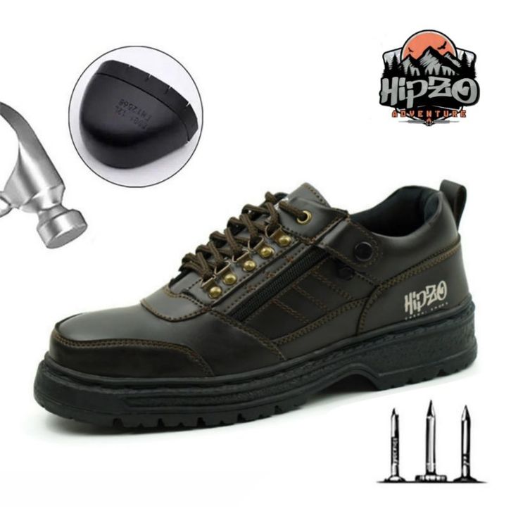 Sepatu Pria Boots Kulit Klasik Safety Pelindung Ujung Besi Sole Anti Paku Spatu Hiking Outdoor Bikers Sport