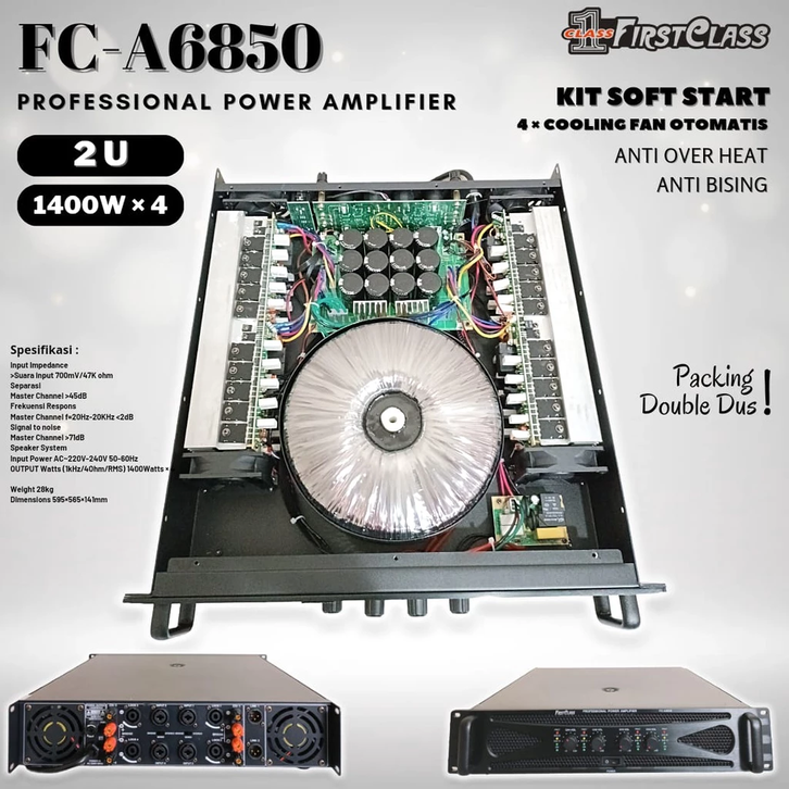 POWER AMPLIFIER FIRSTCLASS FC - A6850 2U 1400 WATT X 4 with cooling fan fca 6850 A6850