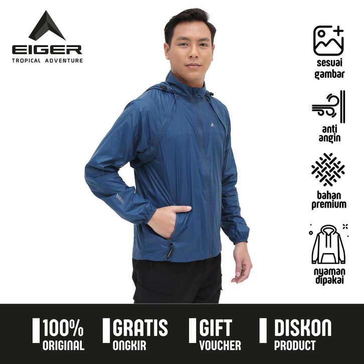Jaket Eiger Pria Original Anti Angin Vigorous Convertible Warna Biru Navy Bahan 29 . UBIH