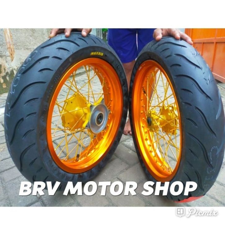 Velg SuperMoto Crf150L Ukuran 300-350+17 Ban 110 Dan 130 Tromol Original Ban Tubles ban 100-80-17 dan 120-70-17
