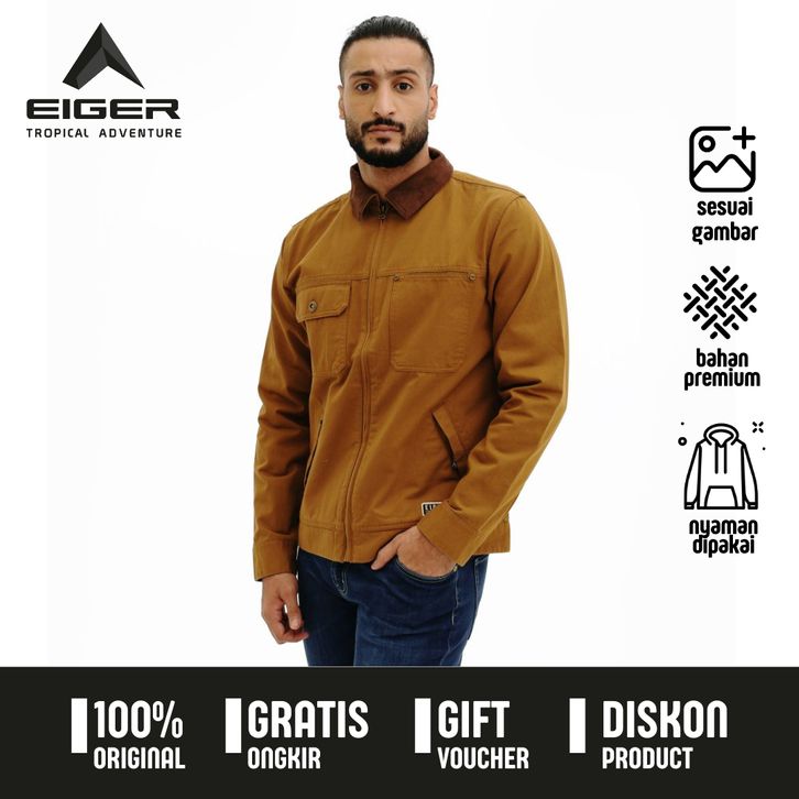 Jaket Eiger Pria Original Bogota Work Shirt Warna Coklat Bahan Katun 64 . KNKB
