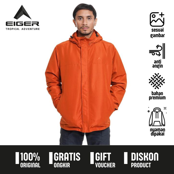 Jaket Eiger Pria Original Anti Angin Ms Equator Windproof F1 Warna Oren Bahan 99 . BDMR