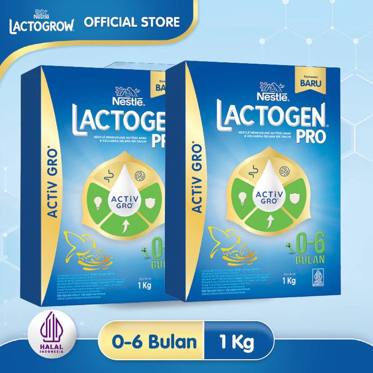 Paket 2 Box Nestle LACTOGEN PRO 0-6 Bulan ACTiVGRO Susu Formula Original 1000gr /1kg x2