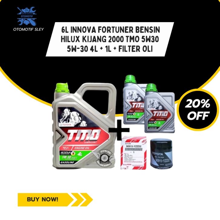 PAKET OLI MESIN 6L INNOVA FORTUNER BENSIN HILUX KIJANG 2000 TMO 5W30 5W-30 4L + 1L + FILTER OLI TERLARIS