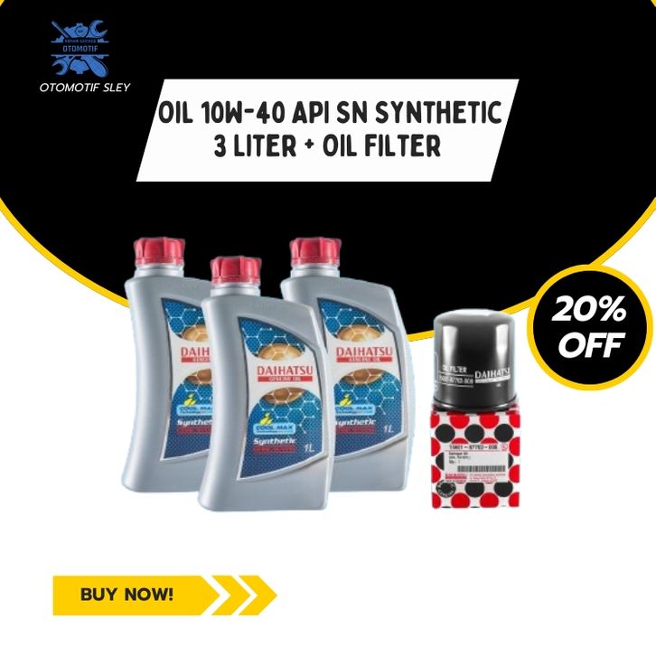 Daihatsu Genuine Oil 10W-40 API SN Synthetic 3 Liter + OIl Filter 15601-87702-008 Terlaris