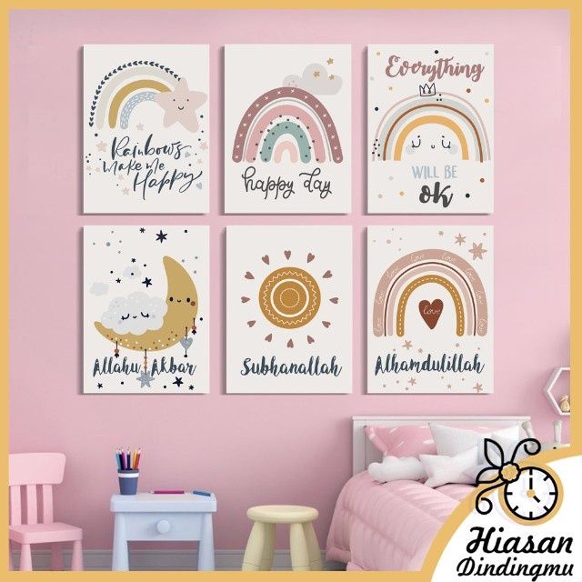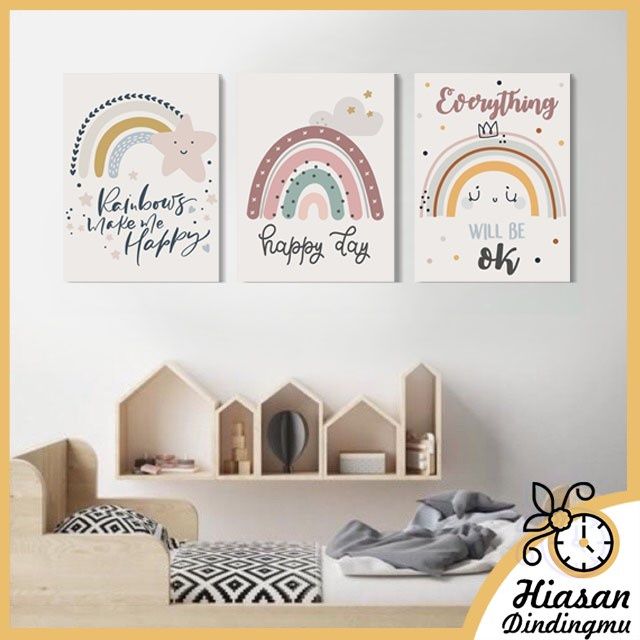 Hiasan kamar tidur aesthetic cewek | Dekorasi kamar aesthetic cewek | Ukuran 15x20 Cm motif rainbow
