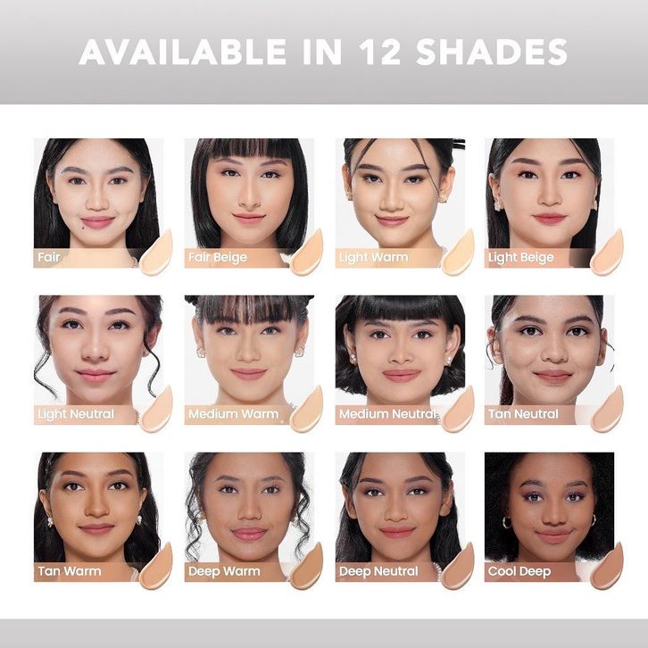 Fair, Fair Beige, Light Warm, Light Beige, Light Neutral, Medium Warn, Medium Neutral, Tan Neutral, Tan Warm, Deep Warm, Deep Neutral, Cool Deep