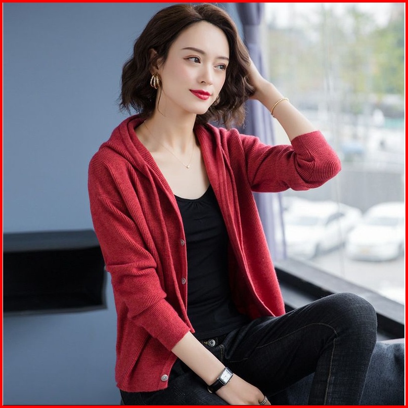 Cardigan Hoodie Kancing Knit Tm Lm2