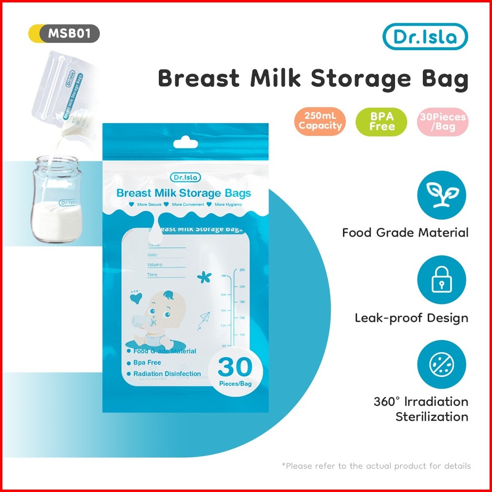 Dr.isla Kantong Asi 250ml 30pcs Penampung Asi Plastik Asi Kantong Susu Bpa Free Sekali Pakai Breastmilk Storage Bag Msb0
