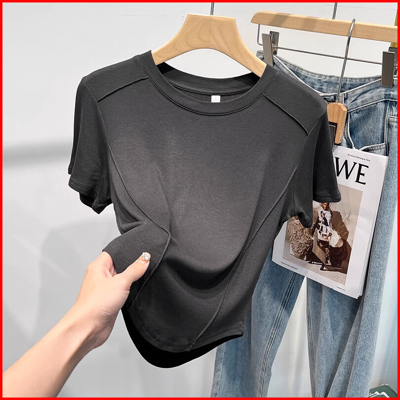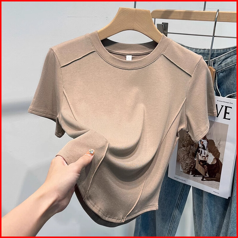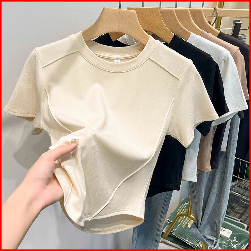 Kaus Lengan Pendek Elastis Kualitas Tinggi Aprikot