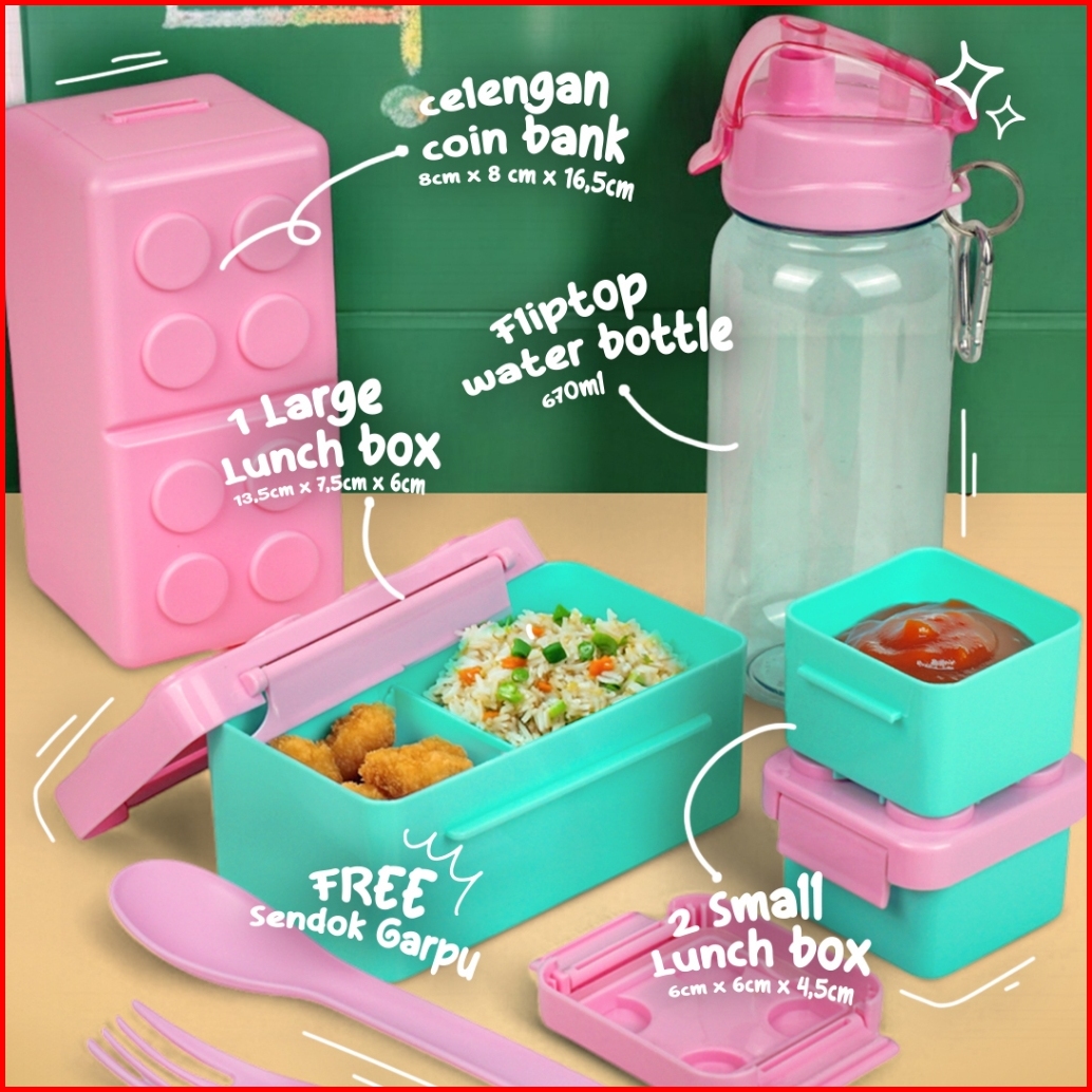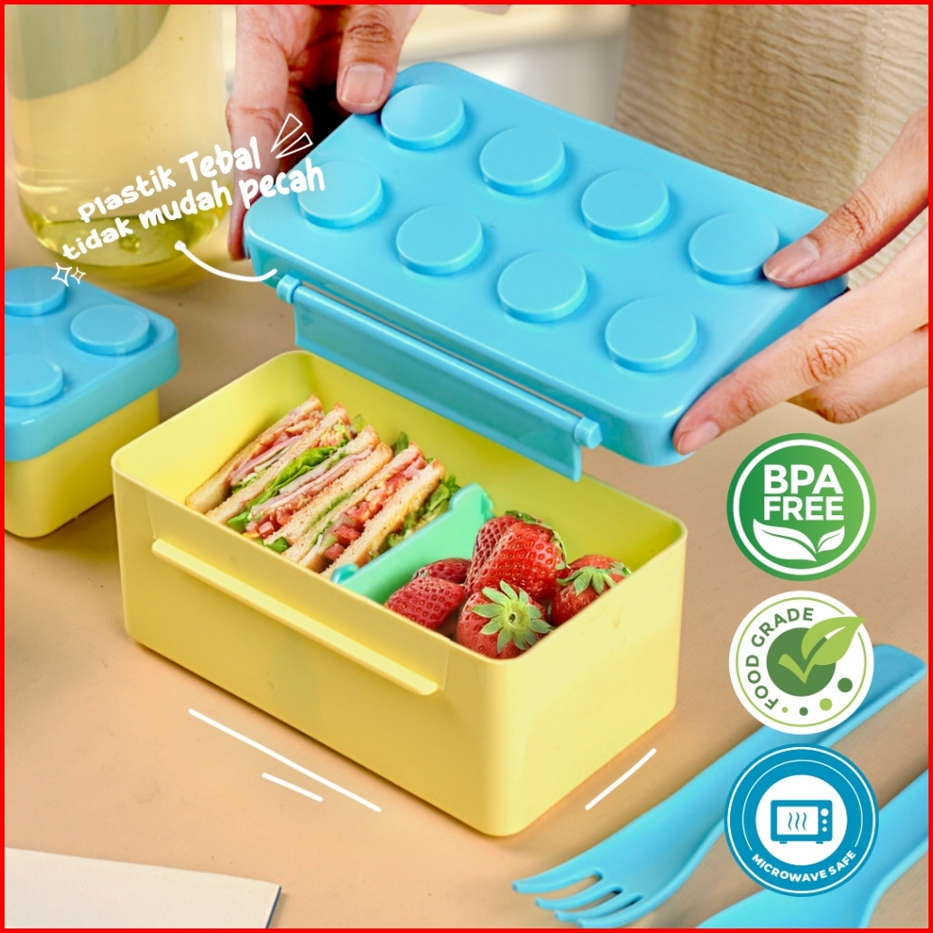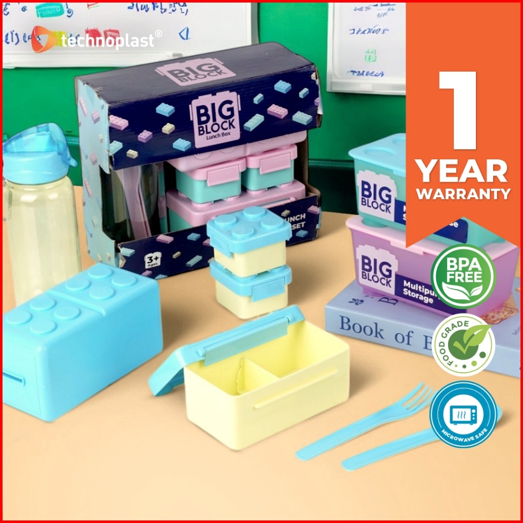 Technoplast Big Block Set Kotak Bekal Sendok Garpu Botol Minum Celengan Tempat Makan Lego Kids Lunch Box Set Bpa Free -