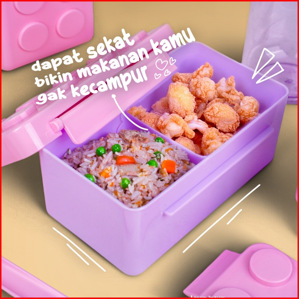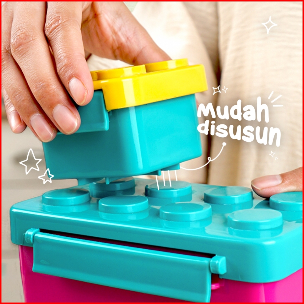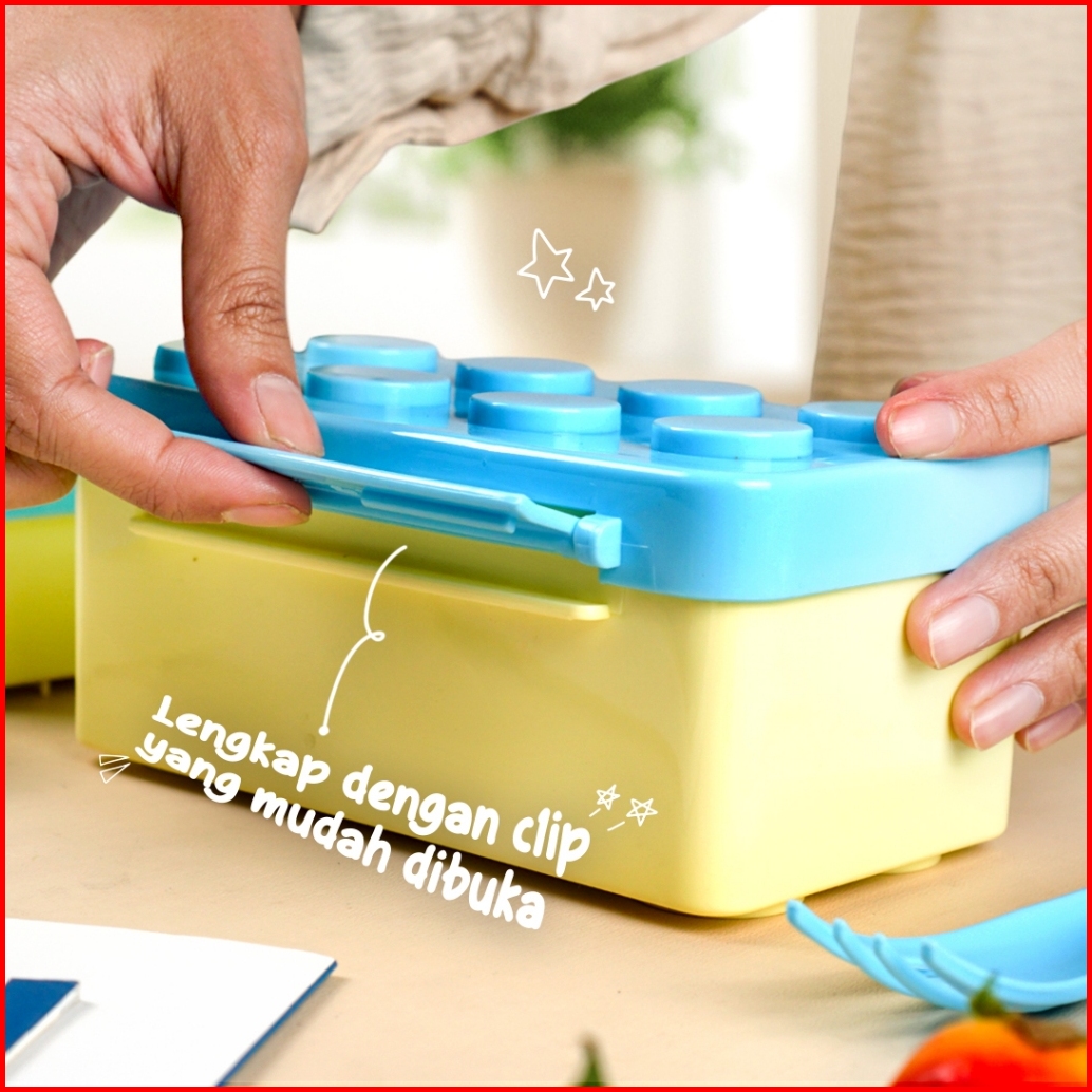 Technoplast Big Block Set Kotak Bekal Sendok Garpu Botol Minum Celengan Tempat Makan Lego Kids Lunch Box Set Bpa Free -