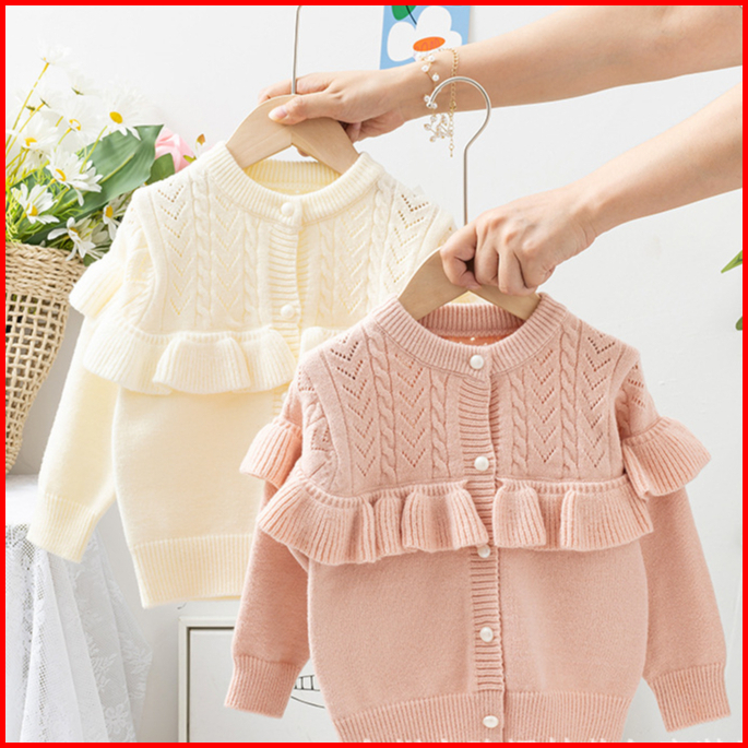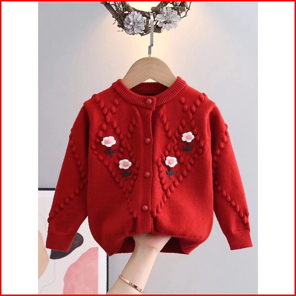 Kardigan Anak Perempuan Tebal Sweater Outer Anak Cewek Halus Lembut Baju Rajut Anak Perempuan Model Korea Cardigan Bayi