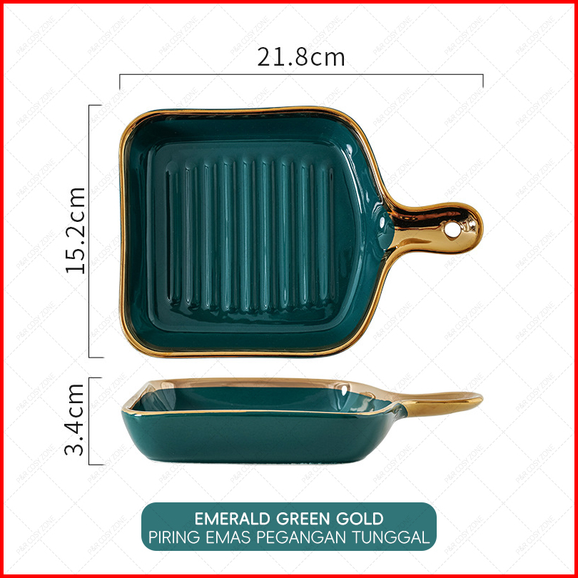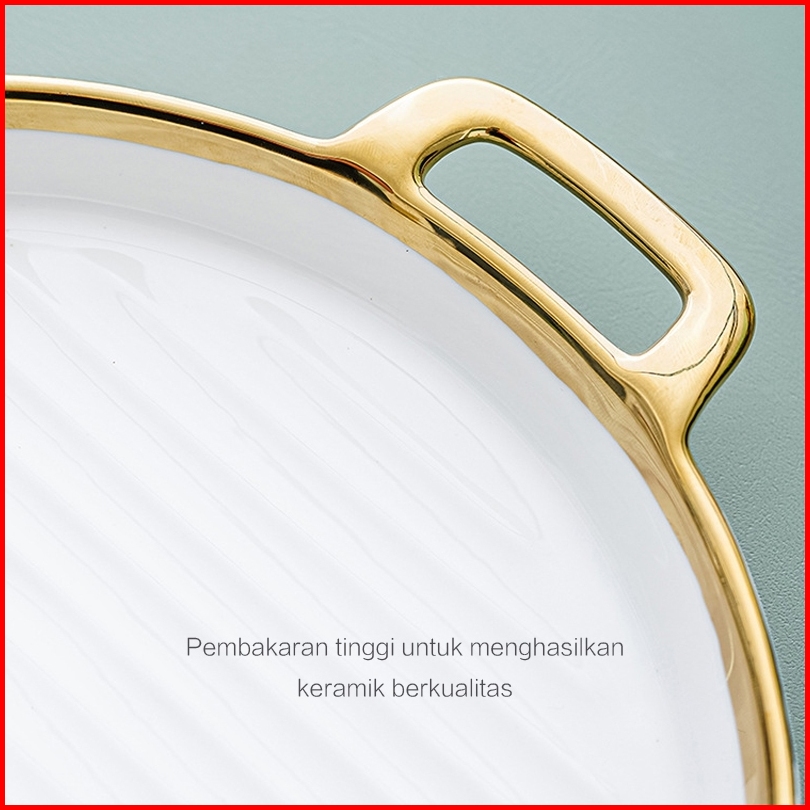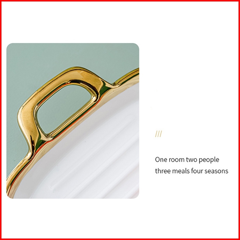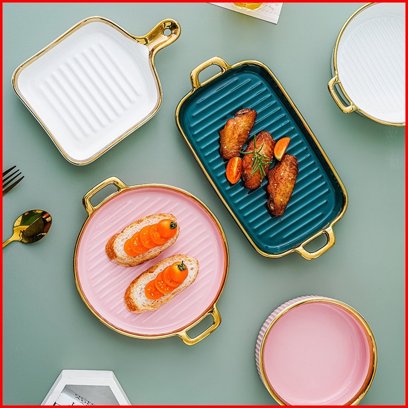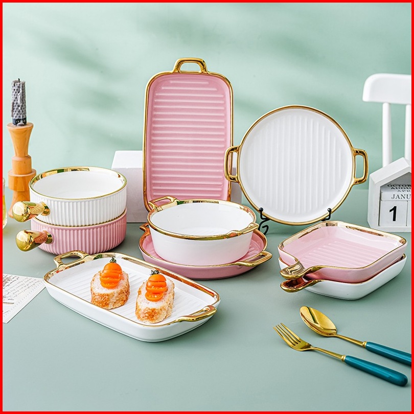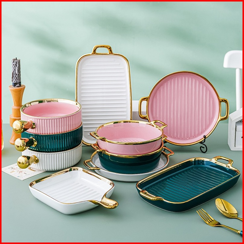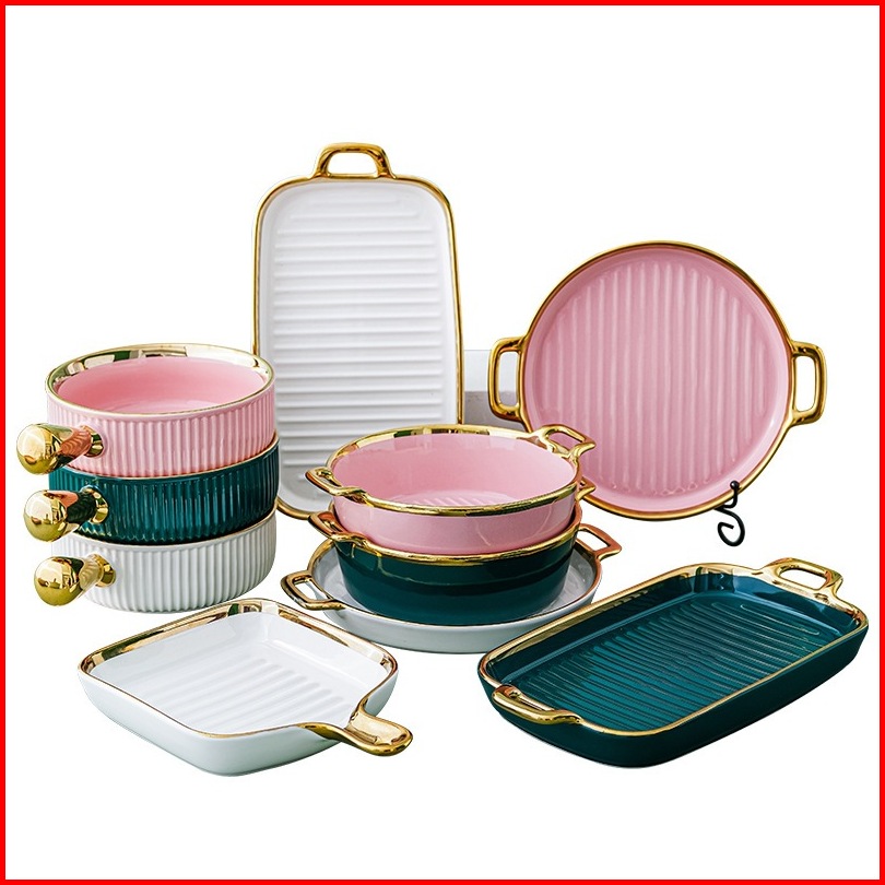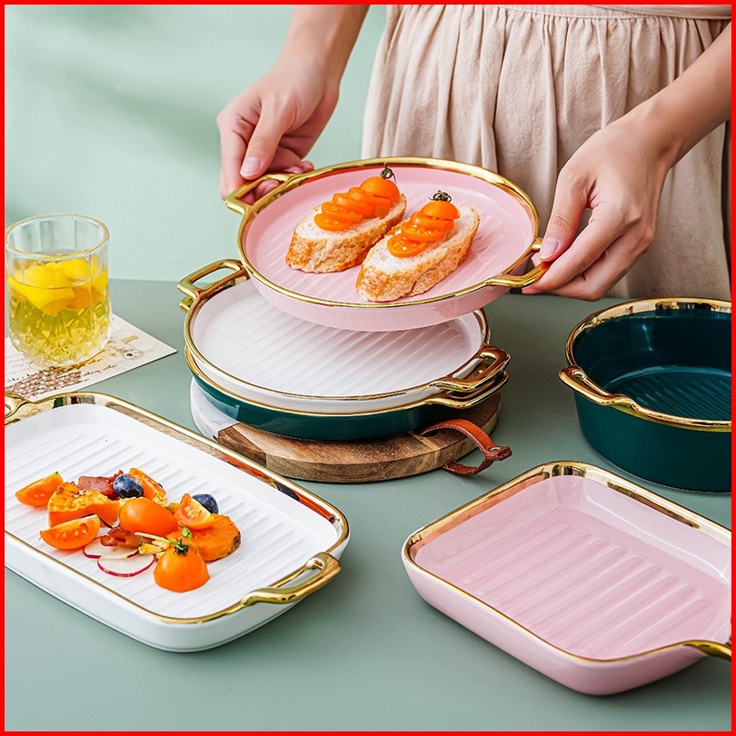 Gaya Istana Eropa Piring Saji Porselen Keramik Cantik 8inci Dengan Gagang Warna Tahan Panas Ceramic Baking Tray Bisa Ove