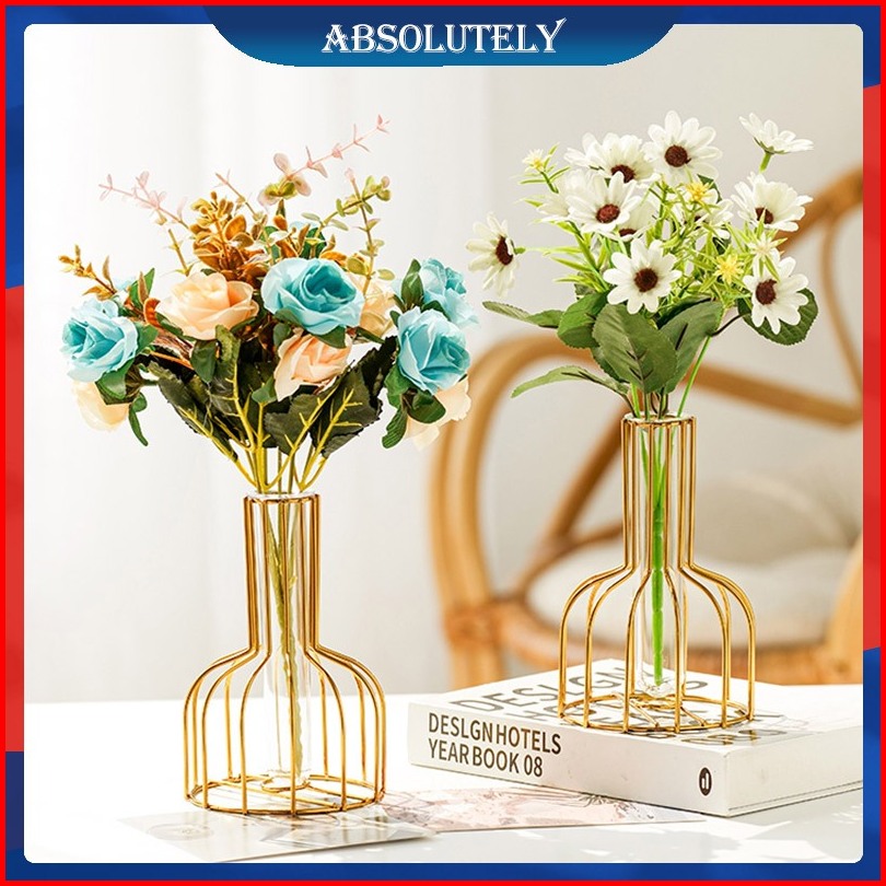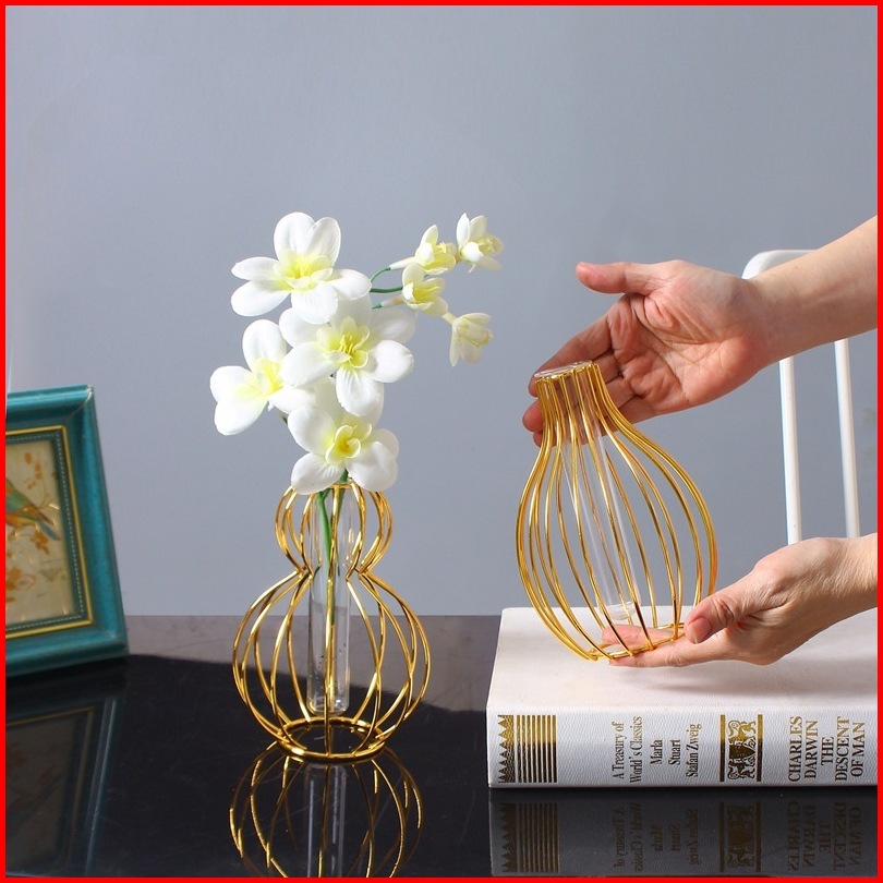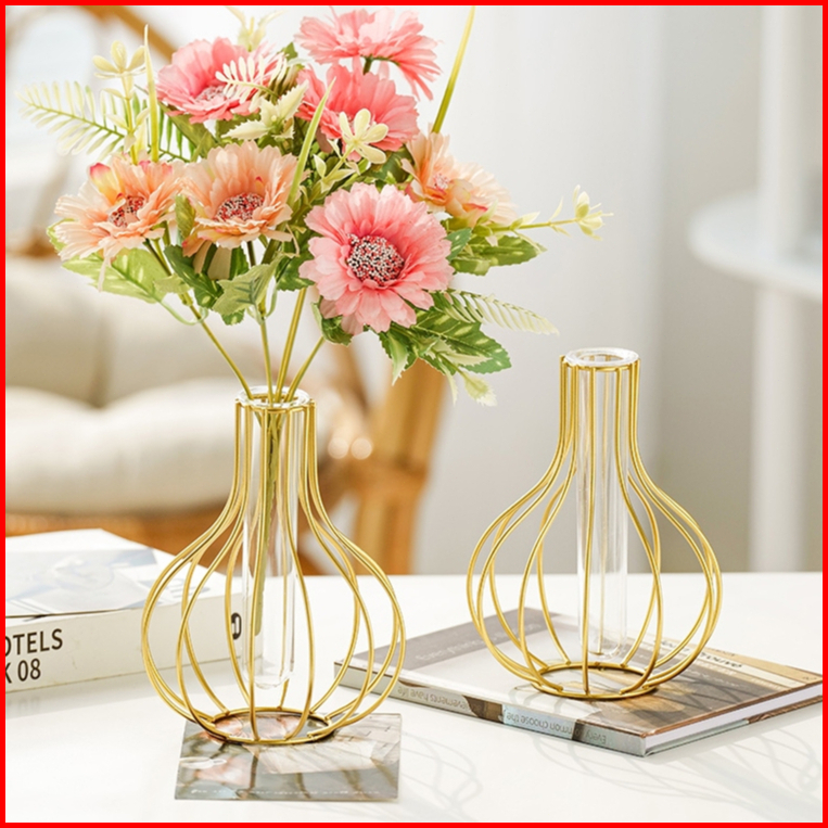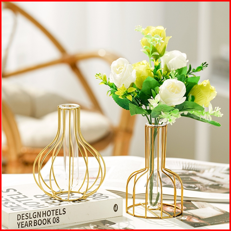 Nordic Golden Glass Vas Besi Hidroponik Tanaman Vas Bunga Meja Kedai Kopi Kantor Dekorasi Rumah Aksesoris Modern