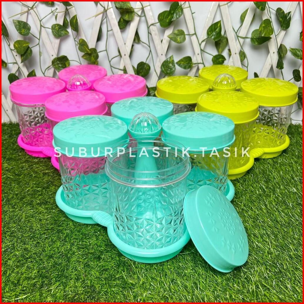 Toples Daun Cantik Yoyo Star Putar Isi 3 4 5 Set Wadah Kue Kering Lebaran Mutiara Kristal Diamond