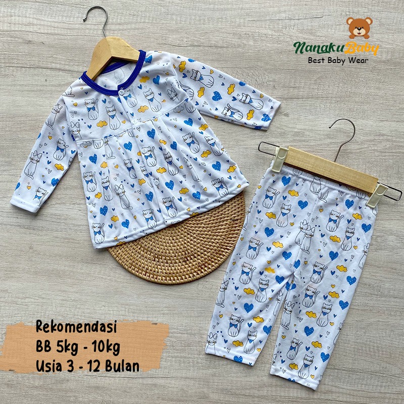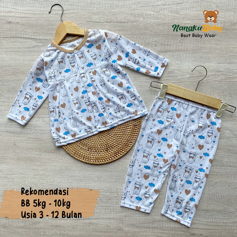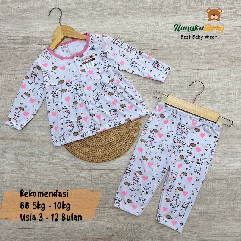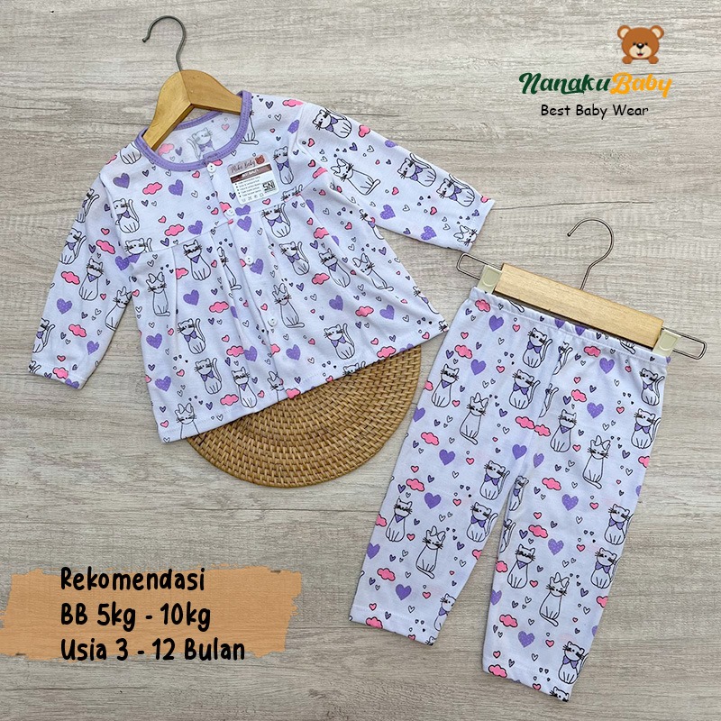 Nanaku Baby - Setelan Bayi Perempuan Kancing Depan Usia 3-12 Bulan Motif Kucing