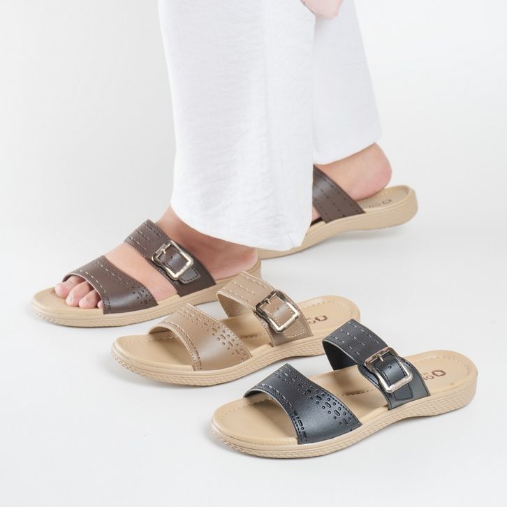 Sandal Wanita Casual Sendal Selop Perempuan Kekinian Bahan Kulit Sintetis Original Model Slip On Trend Kekinian