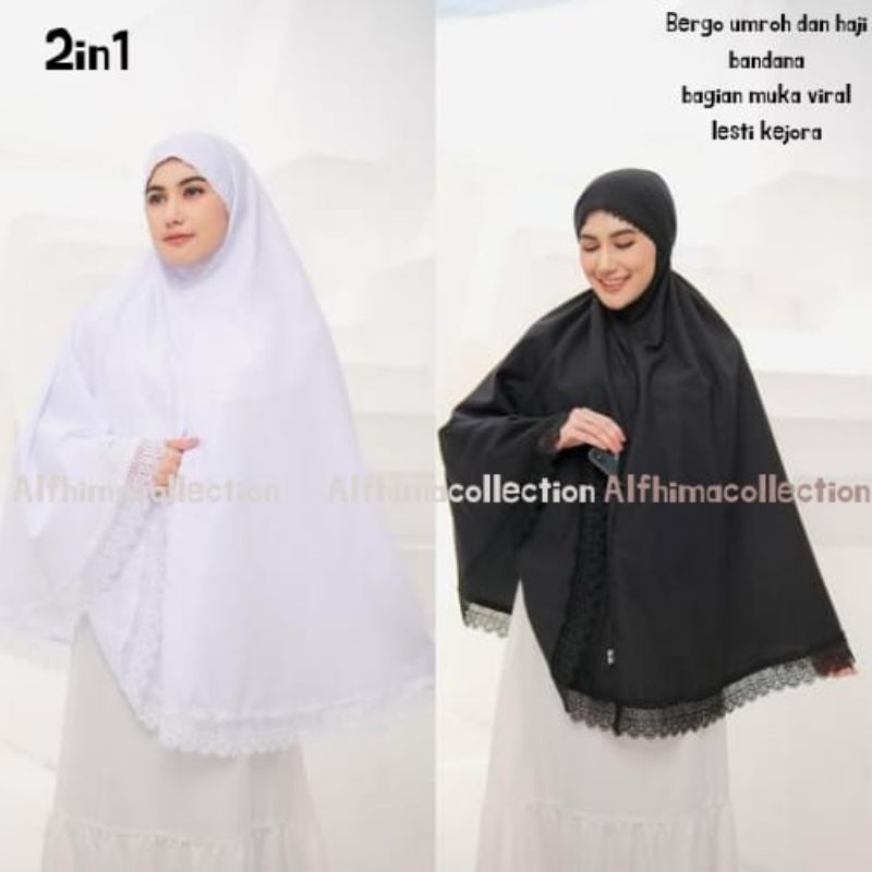 BERGO UMROH HAJI BAHAN KATUN PREMIUM HIJAB JUMBO BERSAKU/BERGO BANDANA UMROH/BERGO LASERCUT UMROH
