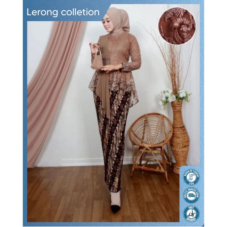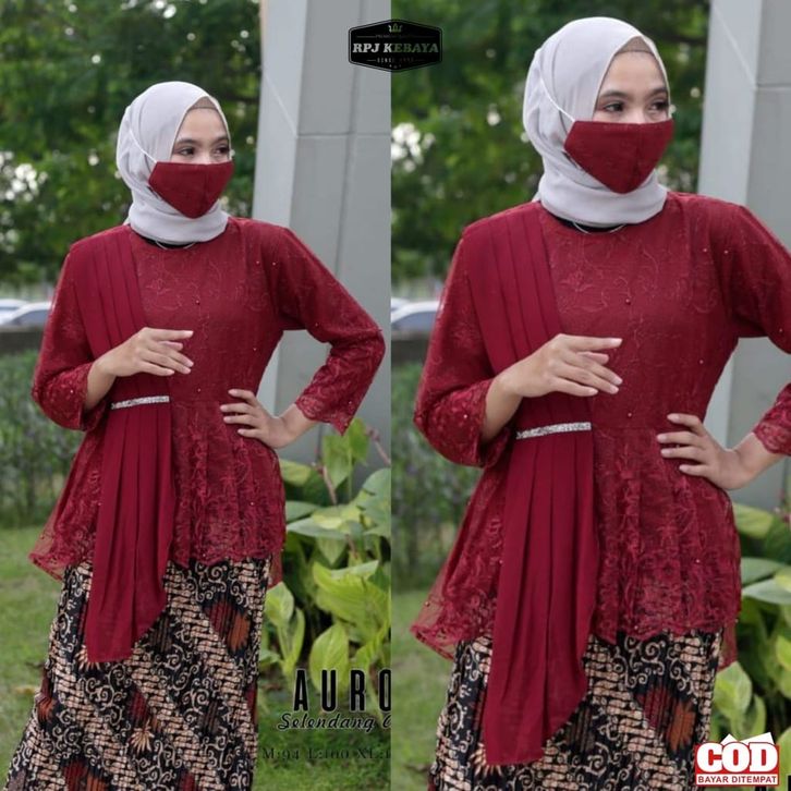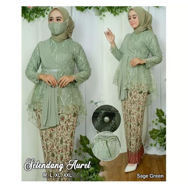 Setelan Kebaya Pesta Aurora Selendang Wisuda Brokat Tulle Terbaru Murah