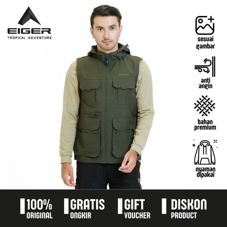 Vest Eiger Pria Original Jaket Rompi Anti Angin X-Speeding Street Warna Hitam Bahan Polyester 29 . XBDL