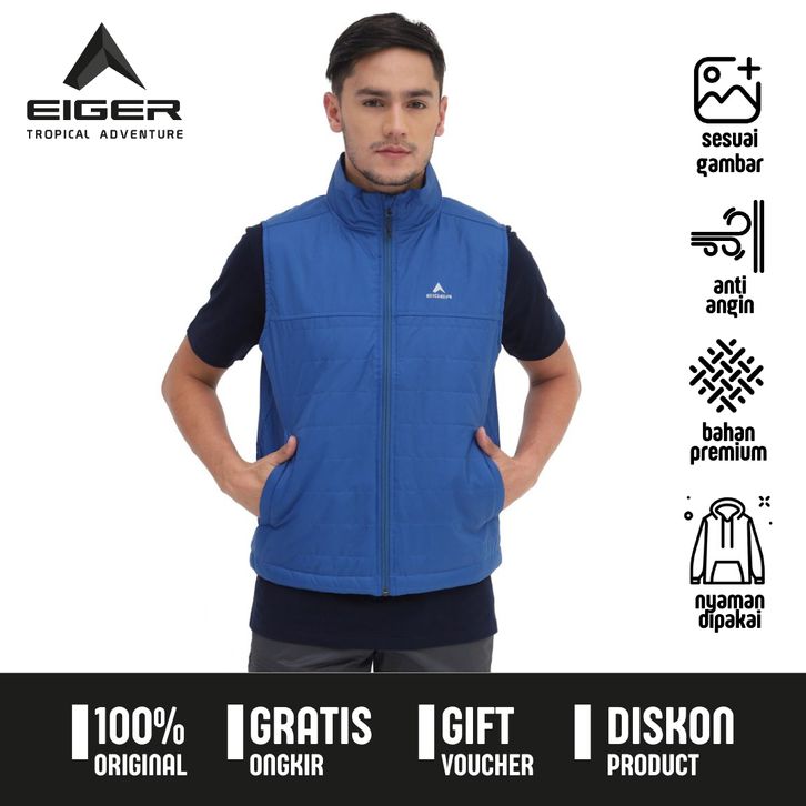 Vest Eiger Pria Original Jaket Rompi Anti Angin Autra Warna Biru Bahan Nylon 18 . FSVY
