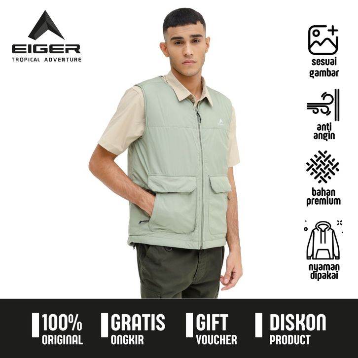 Vest Eiger Pria Original Jaket Rompi Anti Angin Malanae Warm Warna Coklat Bahan Polyester 77 . IZAU