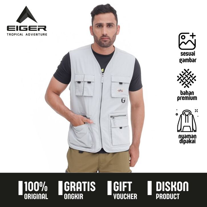Rompi Eiger Original Jaket Vest Venture Warna Light Grey Bahan Katun 75 . IRFC