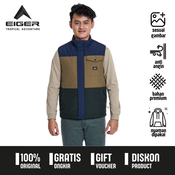 Vest Eiger Pria Original Jaket Rompi Anti Angin Shorecamp Warna Biru Navy Bahan Polyester 13 . WVNG