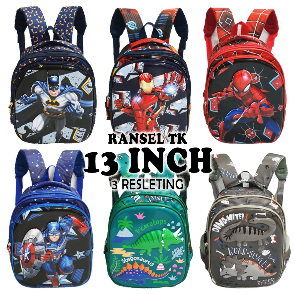 RANSEL TK 13inch dan 16inch TAS RANSEL ANAK SEKOLAH LAKI LAKI KARAKTER KARTUN ANIMAL DINO DINOSOURUS GOGO MITE