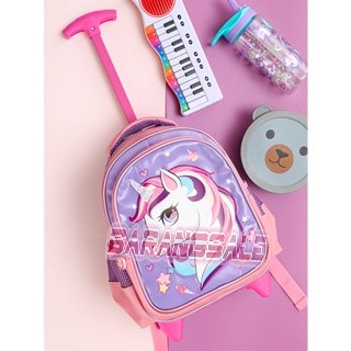 TAS DORONG TROLLEY ANAK PAUD / TK / PLAY GROUP PEREMPUAN GAMBAR KUDA PONY TANDUK SOFT TIMBUL BAHAN TAHAN AIR (