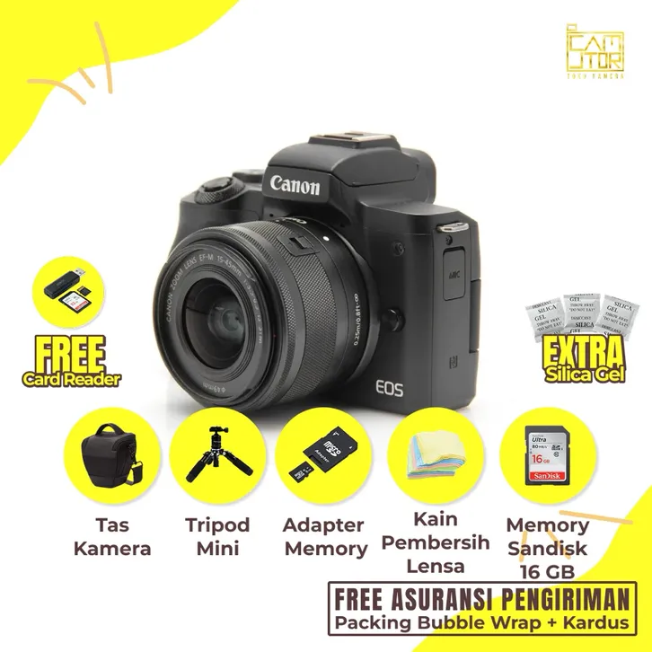 Kamera Mirrorless Canon M50 Lensa Kit 14-55mm No Vignet Second Normal Siap Pakai Free Bonus Bergaransi