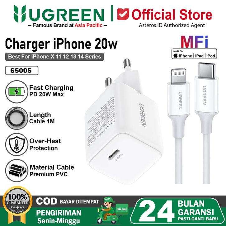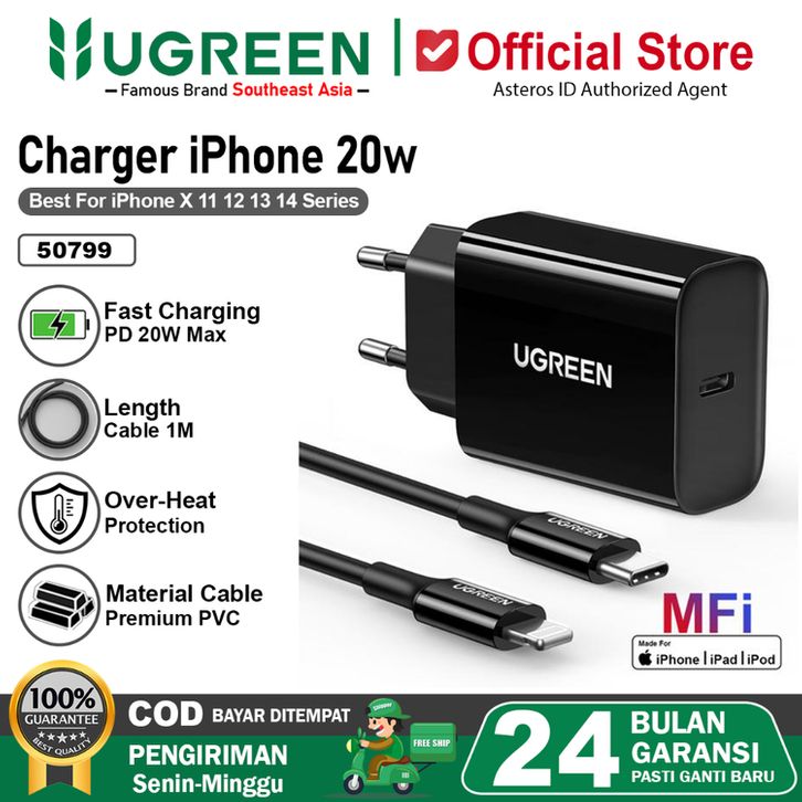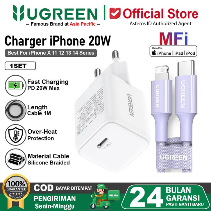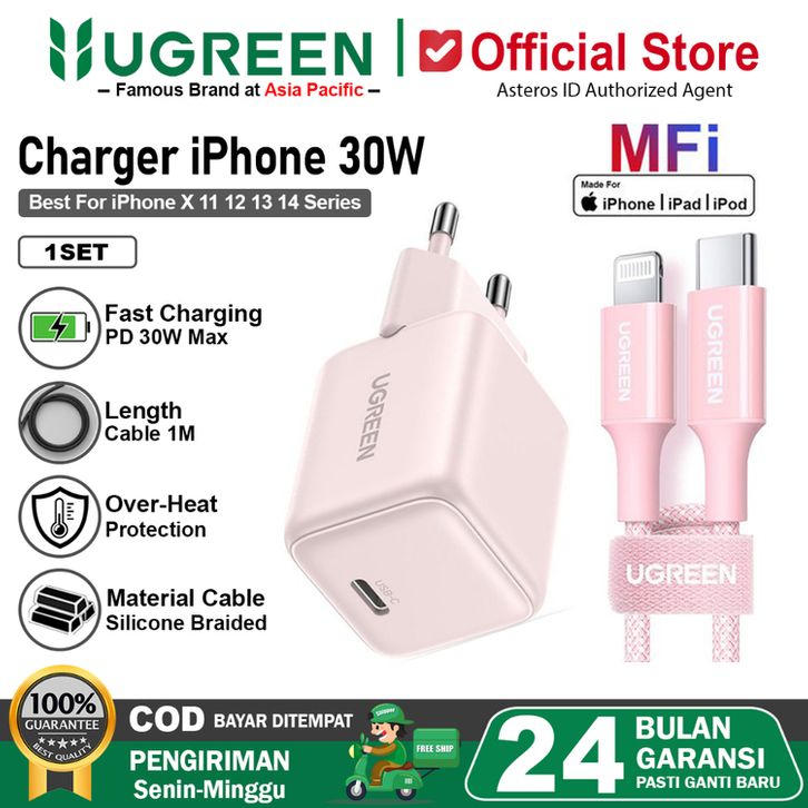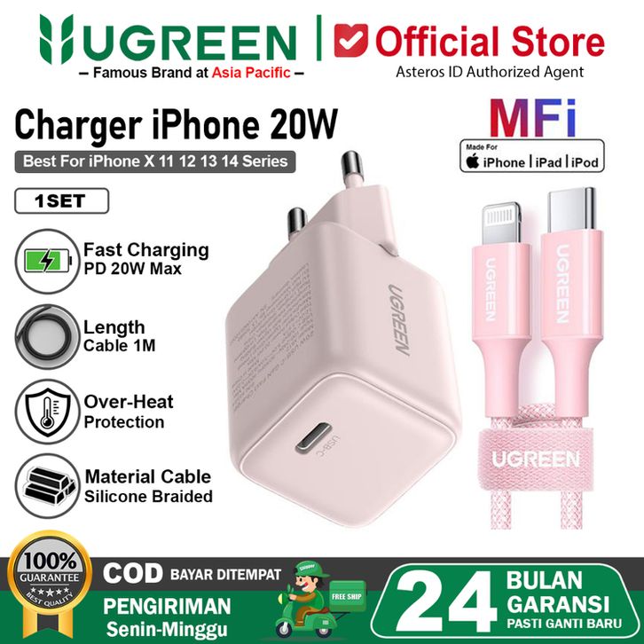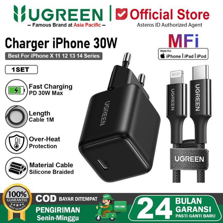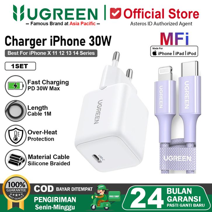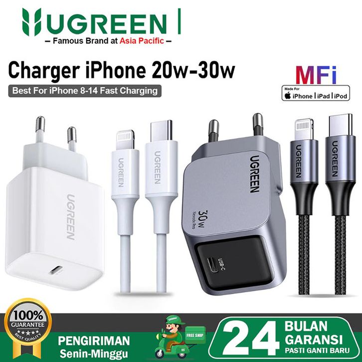 Ugreen Charger iPhone 11 12 13 14 Adaptor + Kabel 1 Set MFI Type C To Lightning Fast Charging 20W 30W Ori Official Store