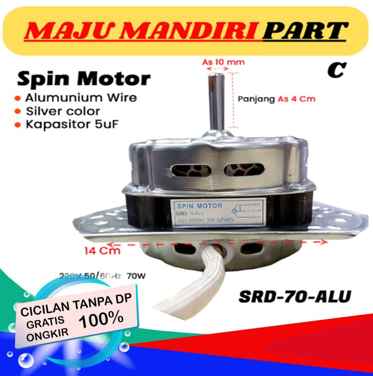 DINAMO SPIN/PENGERING GULUNGAN ALUMUNIUM KAKI 3 MESIN CUCI AS 10MM-SRD 70-ALU (C)
