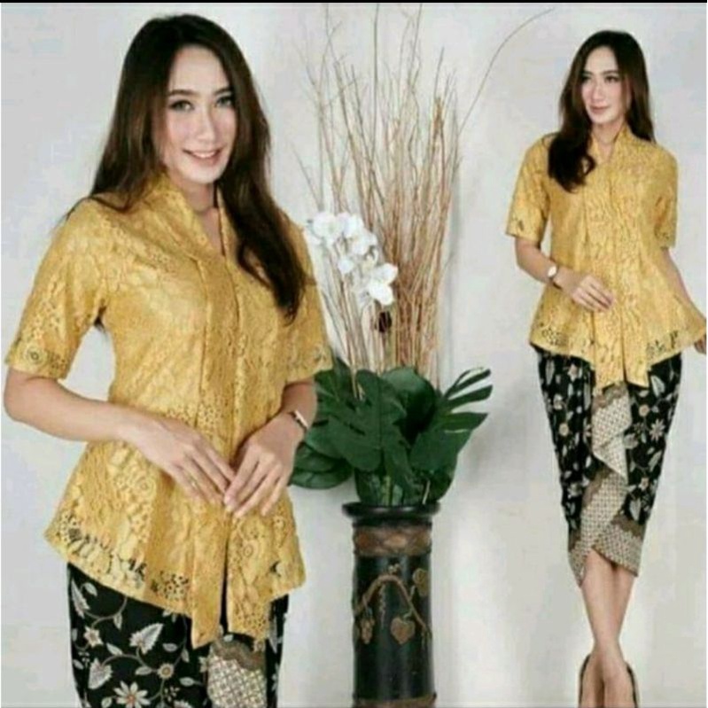 SETELAN KEBAYA BROKAT FLOY LENGAN PENDEK DAN ROK LILIT/SETELAN KEBAYA MODERN/KEBAYA PESTA