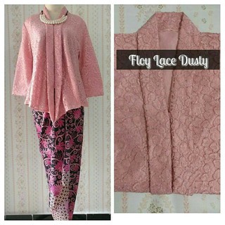 SETELAN KEBAYA MODERN FLOY LACE , KEBAYA KUTUBARU BROKAT WHITE SET KEBAYA DAN ROK LILIT BATIK