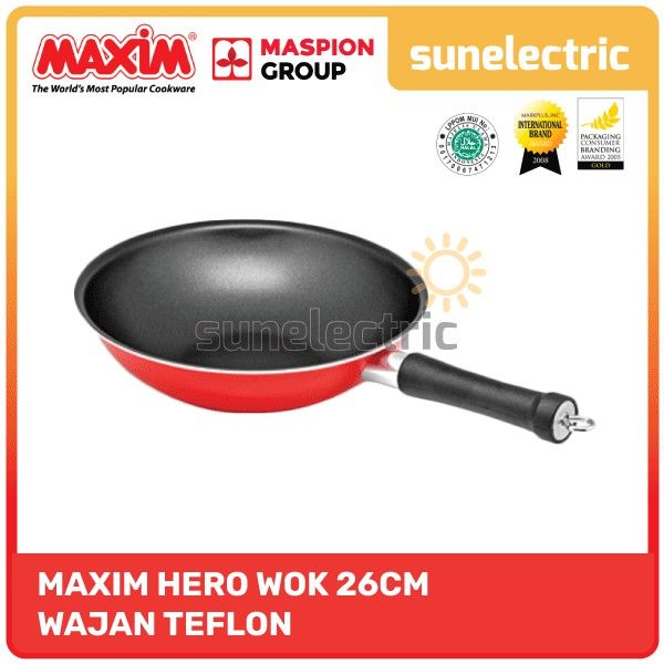 Maxim Hero Wok Panci Wajan Tumis Penggorengan Teflon Anti Lengket 26 cm Teflon Cekung - Merah