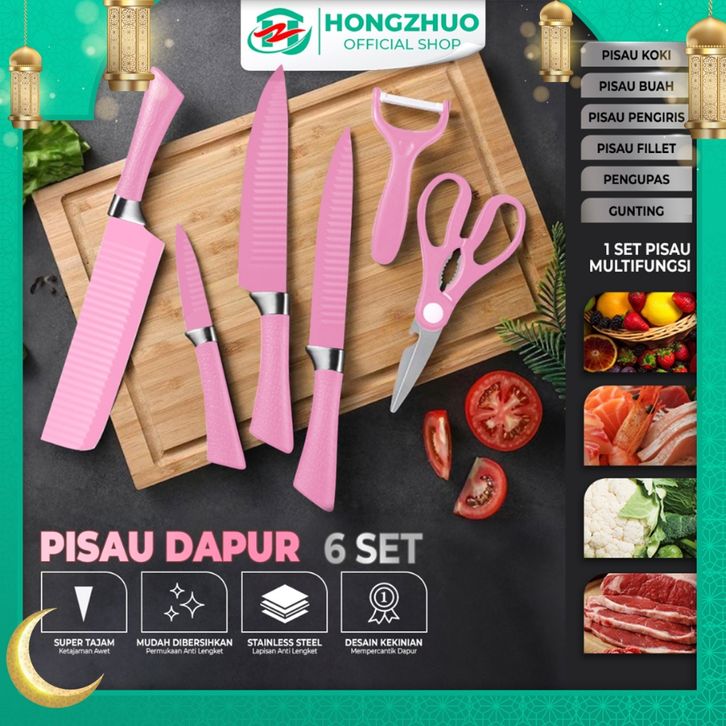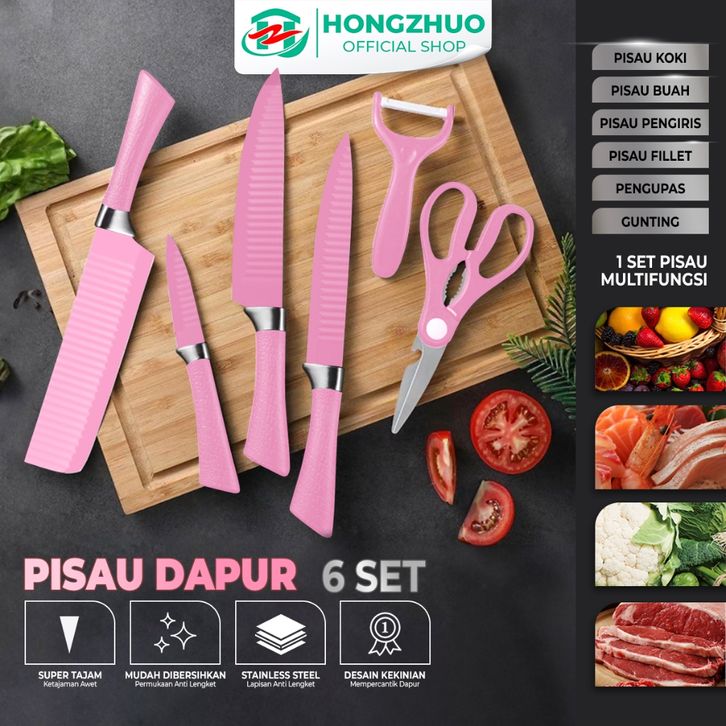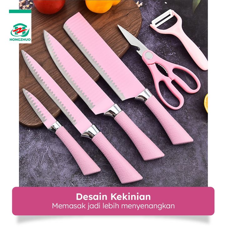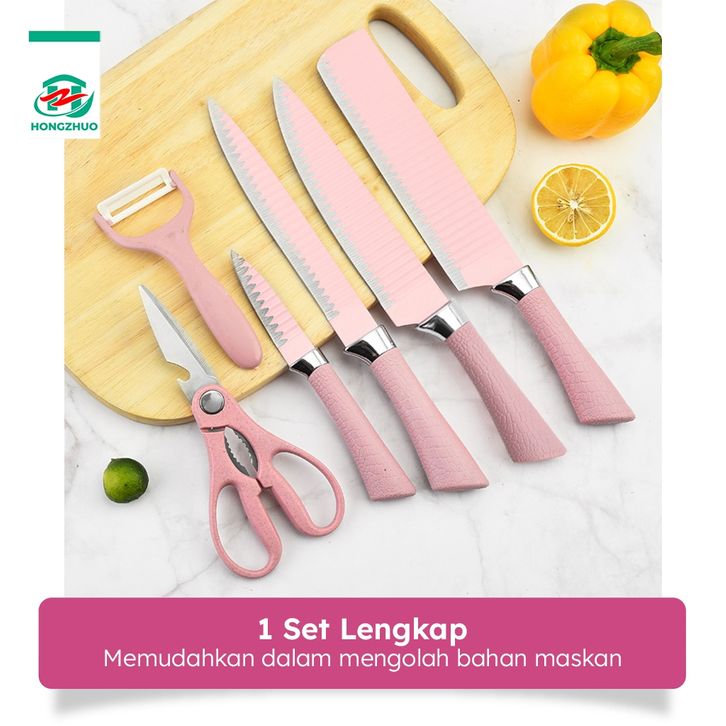Hongzhuo Multifunction Granite Knife Set of 6 Super Sharp / Full Set Pisau Dapur Serba Guna Lengkap - Tajam dan Anti Lengket